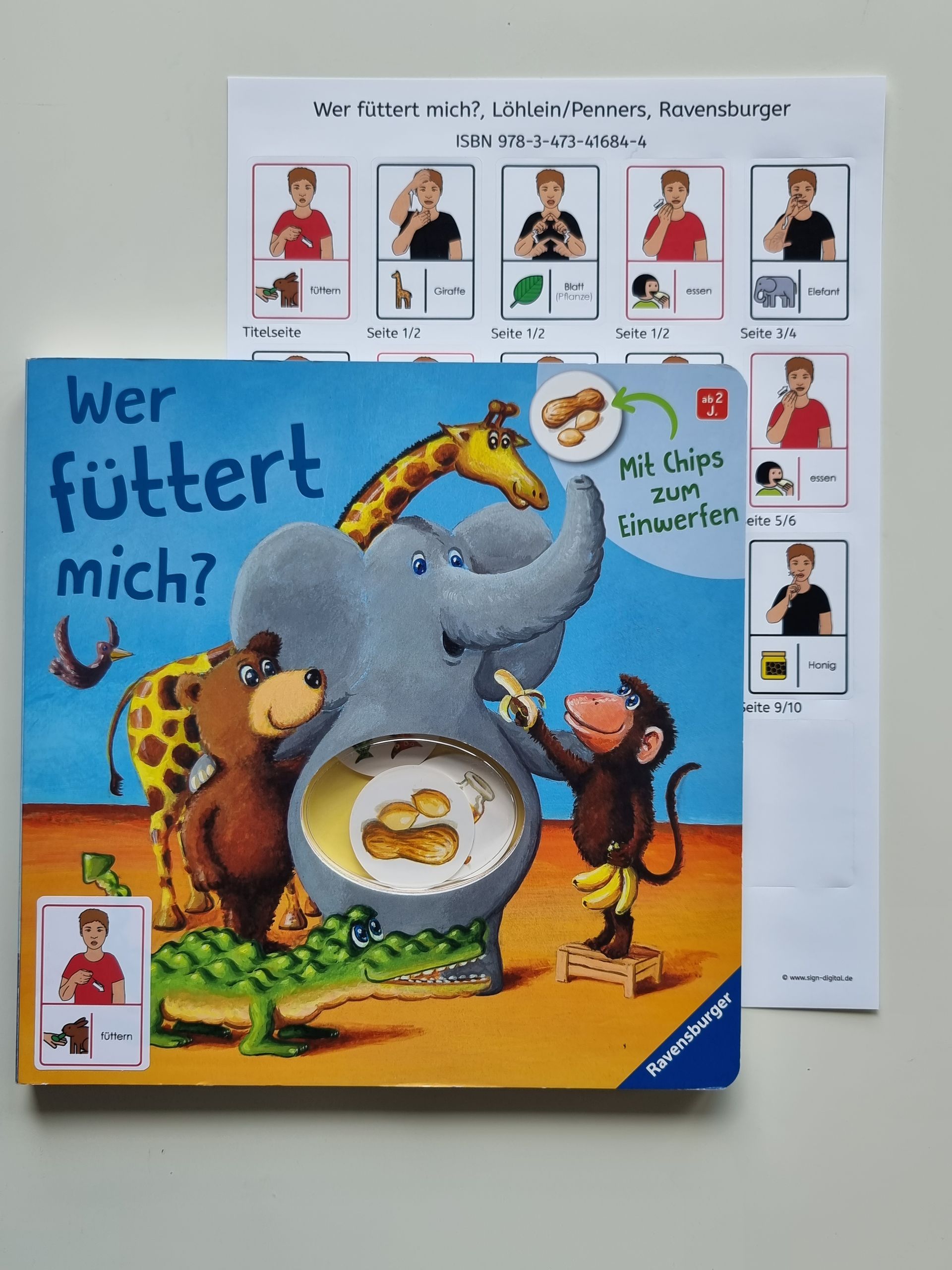 Bilderbuch anschauen mit Gebärden: Hier das Buch „Wer füttert mich?“