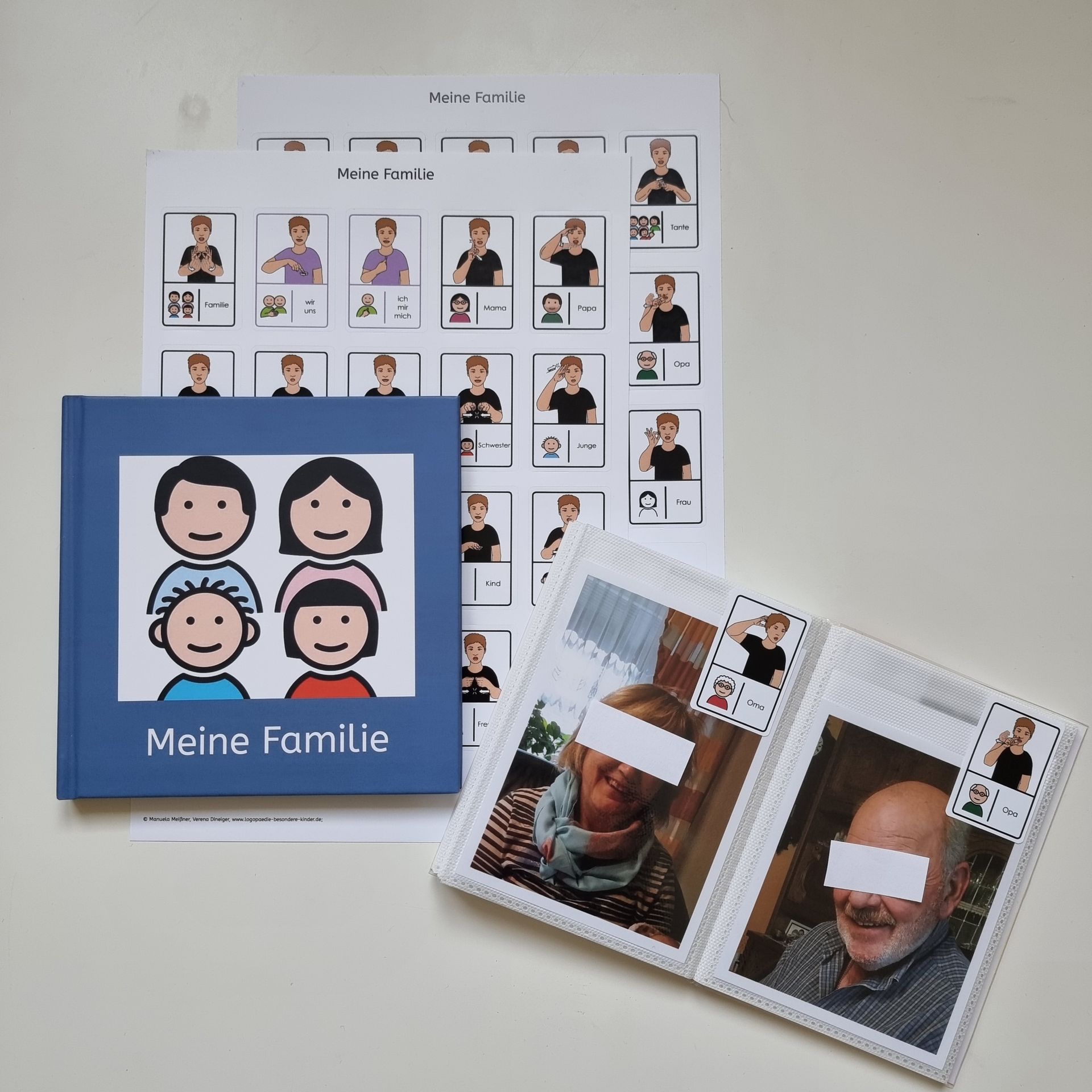 Darüber hinaus sind bei uns Aufkleberbögen für individuell zu erstellende Bücher erhältlich. So kann man sich ein Fotobuch oder Fotoalbum mit Bezugspersonen oder wichtigen Gegenständen aus dem kindlichen Umfeld erstellen
