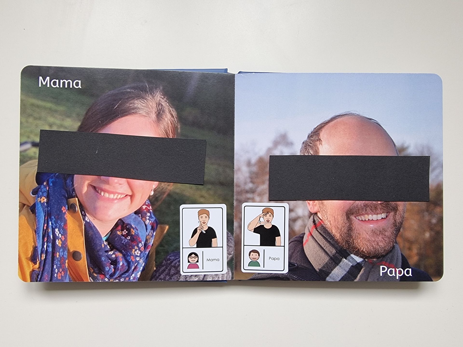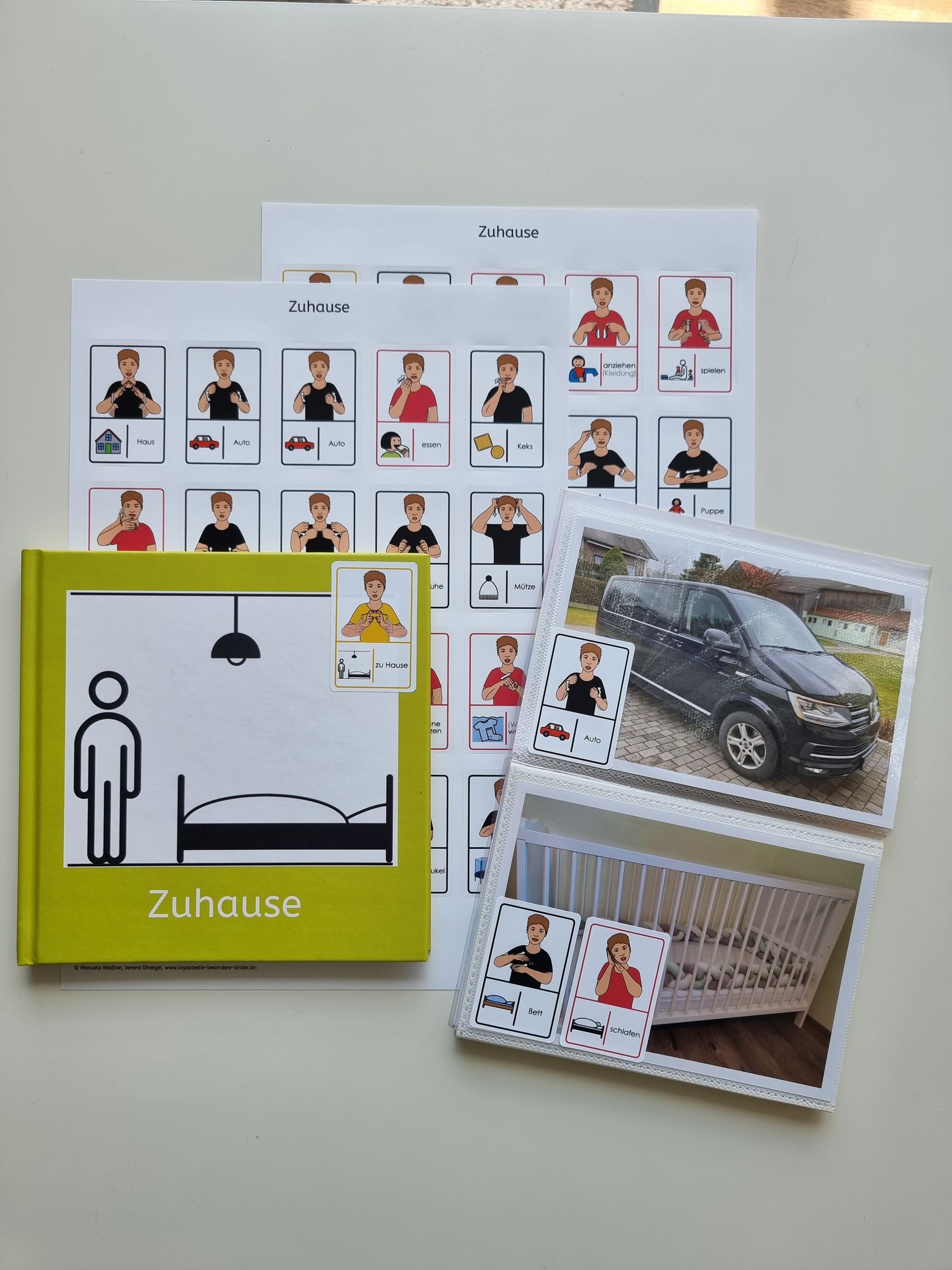 Darüber hinaus sind bei uns Aufkleberbögen für individuell zu erstellende Bücher erhältlich. So kann man sich ein Fotobuch oder Fotoalbum mit Bezugspersonen oder wichtigen Gegenständen aus dem kindlichen Umfeld erstellen